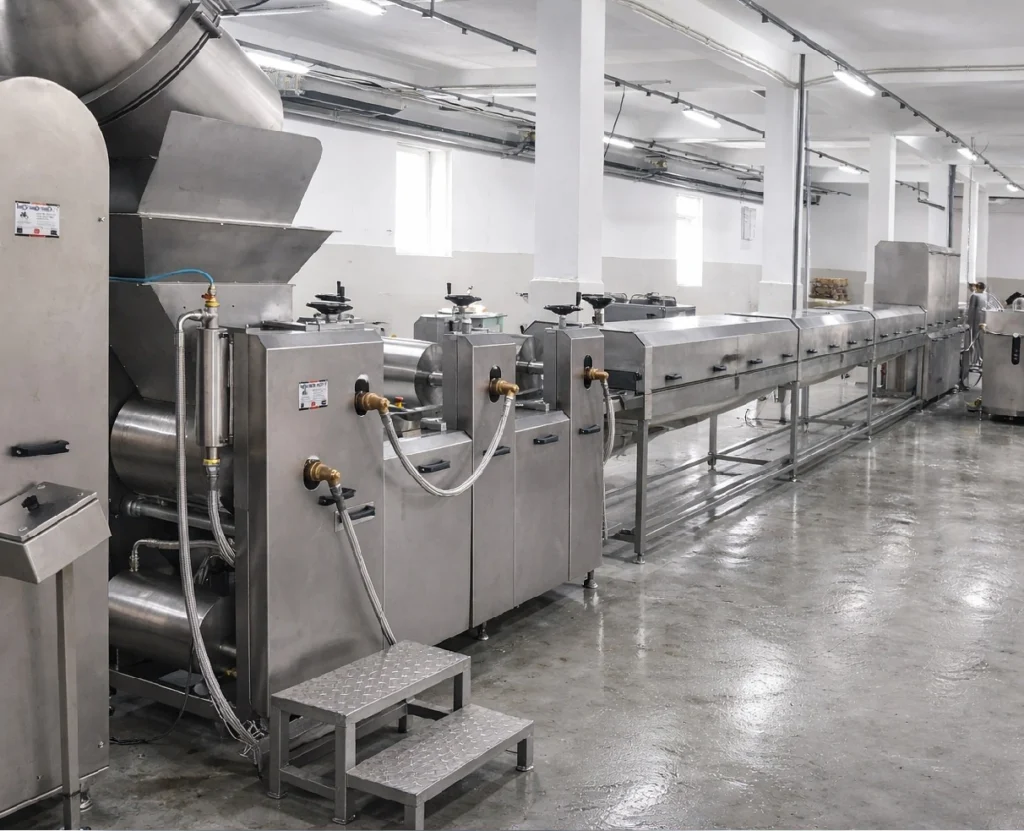 Food processing machinery engineered for the production of chocolate, gummies, snack bars, granola, fruit snacks, tahini, halva, and confectionery products.